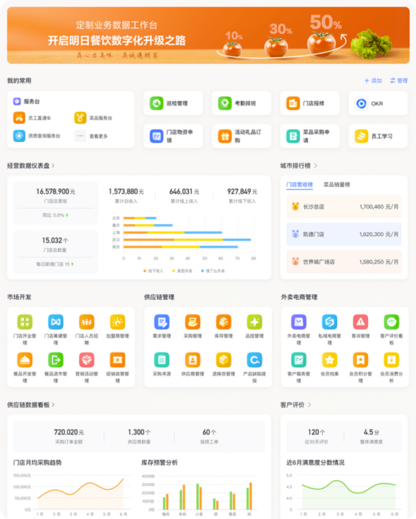 西貝自 2022 年選擇全員使用飛書,實(shí)現(xiàn)總部和門店的高效協(xié)同,并通過飛書 OKR 強(qiáng)化組織戰(zhàn)略落地,打造餐飲行業(yè)數(shù)字化最佳實(shí)踐。公司介紹西貝是中國餐飲百強(qiáng)企業(yè),旗下西貝莜面村是國內(nèi)中式正餐經(jīng)營規(guī)模最大的品牌。西貝 1988 年創(chuàng)立于內(nèi)蒙古臨河,擁有西貝莜面村、賈國龍功夫菜、西貝海鮮、九十九頂氈房四大品牌。 2020 年 6 月,入選“ 2019 年中國餐飲企業(yè)百強(qiáng)”,2021 年 12 月,入選 2021 內(nèi)蒙古民營企業(yè) 100 強(qiáng)名單。用飛書構(gòu)建一站式協(xié)作平臺, 1 秒將重要信息傳達(dá)全國 370 家門店作為全國最大的中式正餐連鎖企業(yè),創(chuàng)立 34 年來,西貝在全國 58 個(gè)城市開設(shè)了 370 家直營門店,員工 26000 人,每年服務(wù) 7000 萬消費(fèi)者。業(yè)務(wù)的快速成長,讓組織也面臨更大的挑戰(zhàn)。如何做強(qiáng)總部的專業(yè)化分工、實(shí)現(xiàn)各專業(yè)職能部門的橫向打通,增進(jìn)部門之間的協(xié)同關(guān)系,加強(qiáng)總部到全國門店的順暢溝通,成為西貝在數(shù)字化經(jīng)營過程中面臨的重要挑戰(zhàn)。完成向飛書的遷移后,西貝用飛書打通全員通訊錄,總部可即時(shí)聯(lián)系到任意門店的任意一個(gè)員工,員工間可設(shè)置精細(xì)的溝通權(quán)限管控,找人、溝通都更便捷。使用飛書會議異地溝通,支持千方同時(shí)參會,一鍵發(fā)起企業(yè)內(nèi)直播,讓會議更高效。會后飛書妙記自動(dòng)生成錄像及逐字稿,1.8 萬字會議紀(jì)要只需 5 分鐘,準(zhǔn)確率高達(dá) 98% 以上,讓會議結(jié)論有據(jù)可循。西貝還將公司內(nèi)的各類文檔遷移到飛書文檔中,并使用知識庫實(shí)現(xiàn)重要信息的整合、沉淀。使用飛書前,資料沉淀在本地文件中,文件傳達(dá)到全國員工,需員工層層復(fù)制轉(zhuǎn)發(fā)、效率低。使用飛書后,可以用一個(gè)在線鏈接,和所有員工分享最新版本內(nèi)容,并支持隨時(shí)更新。文檔權(quán)限可嚴(yán)格管控,限制復(fù)制和下載權(quán)限,僅限內(nèi)部查閱,重要信息可 1 秒加急上萬人,使命必達(dá)。用飛書,僅需 1 小時(shí)搭建業(yè)務(wù)表格管理供應(yīng)商抽檢、開票工單餐飲上下游環(huán)節(jié)眾多,有大量非標(biāo)準(zhǔn)化的業(yè)務(wù)場景。這些業(yè)務(wù)場景無法通過成熟第三方系統(tǒng)實(shí)現(xiàn)業(yè)務(wù)數(shù)字化,而團(tuán)隊(duì)靠填表、傳文件、人工匯總的方式運(yùn)轉(zhuǎn),又低效繁瑣。飛書多維表格可靈活搭建輕便的業(yè)務(wù)數(shù)字化工具,系統(tǒng)“想要就能有”,最快 1 小時(shí)即可上線。比如,西貝食品安全巡視組會定期進(jìn)行供應(yīng)商、門店的抽檢。使用飛書前,所有小組成員需在 Excel 上填寫相關(guān)信息,信息層層上交、匯總,部門逐級催辦,數(shù)據(jù)統(tǒng)計(jì)報(bào)告制作繁瑣,每次抽查,往往需要 1 整個(gè)工作日專人進(jìn)行資料整理。使用飛書后,團(tuán)隊(duì)將抽檢工作通過飛書多維表格協(xié)作,使用表格分配任務(wù)、系統(tǒng)自動(dòng)提醒還未提交的成員,數(shù)據(jù)分頭錄入、自動(dòng)匯總,并能通過儀表盤實(shí)時(shí)展現(xiàn)數(shù)據(jù)洞察。類似的,通過多維表格搭建開票流程的協(xié)作工具,也讓西貝團(tuán)隊(duì)每年省下 65 人·天。西貝門店與客服中心的同事,經(jīng)常遇到客戶補(bǔ)開發(fā)票的需求??蛻綦x店后需補(bǔ)開發(fā)票,無法按常規(guī)開票流程自助實(shí)現(xiàn),往往需要客服、財(cái)務(wù)、門店多方協(xié)協(xié)助完成。使用飛書前,客服或門店接到客戶特殊開票需求后,需與客戶人工收集相關(guān)信息;部分開票信息不規(guī)范、不全面,可能需要和顧客二次溝通,效率低下、影響顧客體驗(yàn);相關(guān)信息通過即時(shí)消息與財(cái)務(wù)溝通,無法清晰掌握開票進(jìn)度,協(xié)作成本高;每次開票信息都需要財(cái)務(wù)系統(tǒng)中人工確認(rèn)匹配,操作易出錯(cuò);使用飛書后,客戶點(diǎn)擊客服提供的鏈接、或在門店掃碼,填寫飛書表單,可準(zhǔn)確提交開票信息;系統(tǒng)自動(dòng)通知財(cái)務(wù)同事處理開票;多維表格內(nèi)自動(dòng)根據(jù)客戶所在門店匹配對應(yīng)開票信息,省去人工確認(rèn);客服完成開票后,系統(tǒng)自動(dòng)提醒客服或門店辦結(jié)情況。從消費(fèi)者到門店員工,再到總部客服、財(cái)務(wù)團(tuán)隊(duì),使用多維表格無縫連通,信息效率大大提高。用飛書搭建學(xué)習(xí)群,自動(dòng)化沉淀組織洞察與思考西貝倡導(dǎo)建設(shè)學(xué)習(xí)型組織,在高管團(tuán)隊(duì)中建立“日清日高”學(xué)習(xí)群(今天完成的事情必須比昨天有提高,明天的目標(biāo)必須比今天更高),鼓勵(lì)每位高管每日分享工作心得體會,并將內(nèi)容匯總、沉淀西貝文化,持續(xù)擴(kuò)大影響力。使用飛書前,西貝需安排專人負(fù)責(zé)匯總?cè)簝?nèi)消息,員工需逐條手工匯總,費(fèi)時(shí)費(fèi)力,資料沉淀在本地文件中,難傳播、檢索。使用飛書后,飛書群內(nèi)機(jī)器人可將群消息自動(dòng)同步到多維表格中,并自動(dòng)生成精致的畫冊視圖,員工打開多維表格可隨時(shí)查看最新分享內(nèi)容,用工具固化文化,