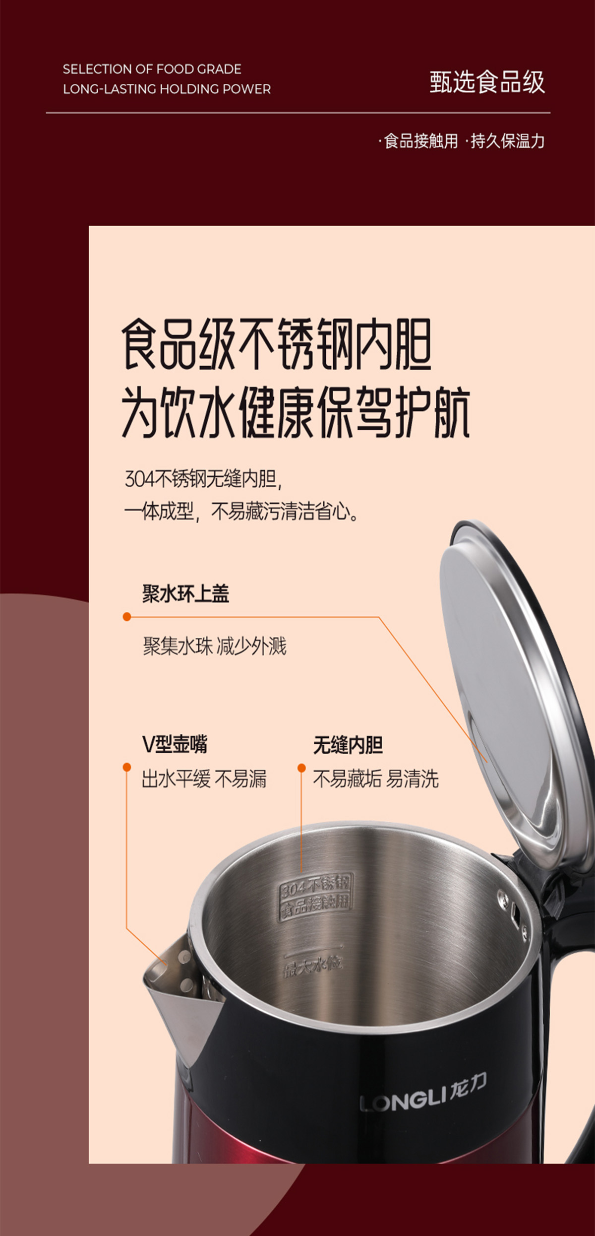 養生的朋友不僅在食補上講究,更注重煮食容器的質量安全。除了外觀顏值,在材質、工藝上也同樣講究。內外雙層不銹鋼材質,外殼雙層隔熱,觸感生溫卻不燙手,內里是SUS304不銹鋼內膽,煮水安全又健康,喝水不會喝出尷尬鐵銹味。清潔起來也很容易,大口徑廣角設計,手可以伸入刷洗,再加上一體成型無縫內膽,輕輕松松一擦即可!