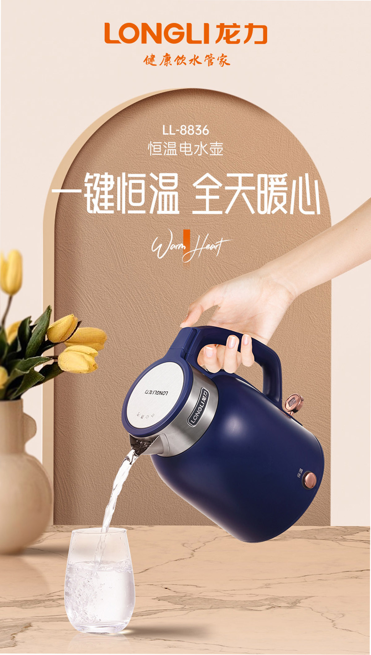 新年準備到啦~你家的電水壺換新了嗎?快點備一個龍力電水壺吧,我們是您的健康飲水管家,讓你喝上健康水、安心水!